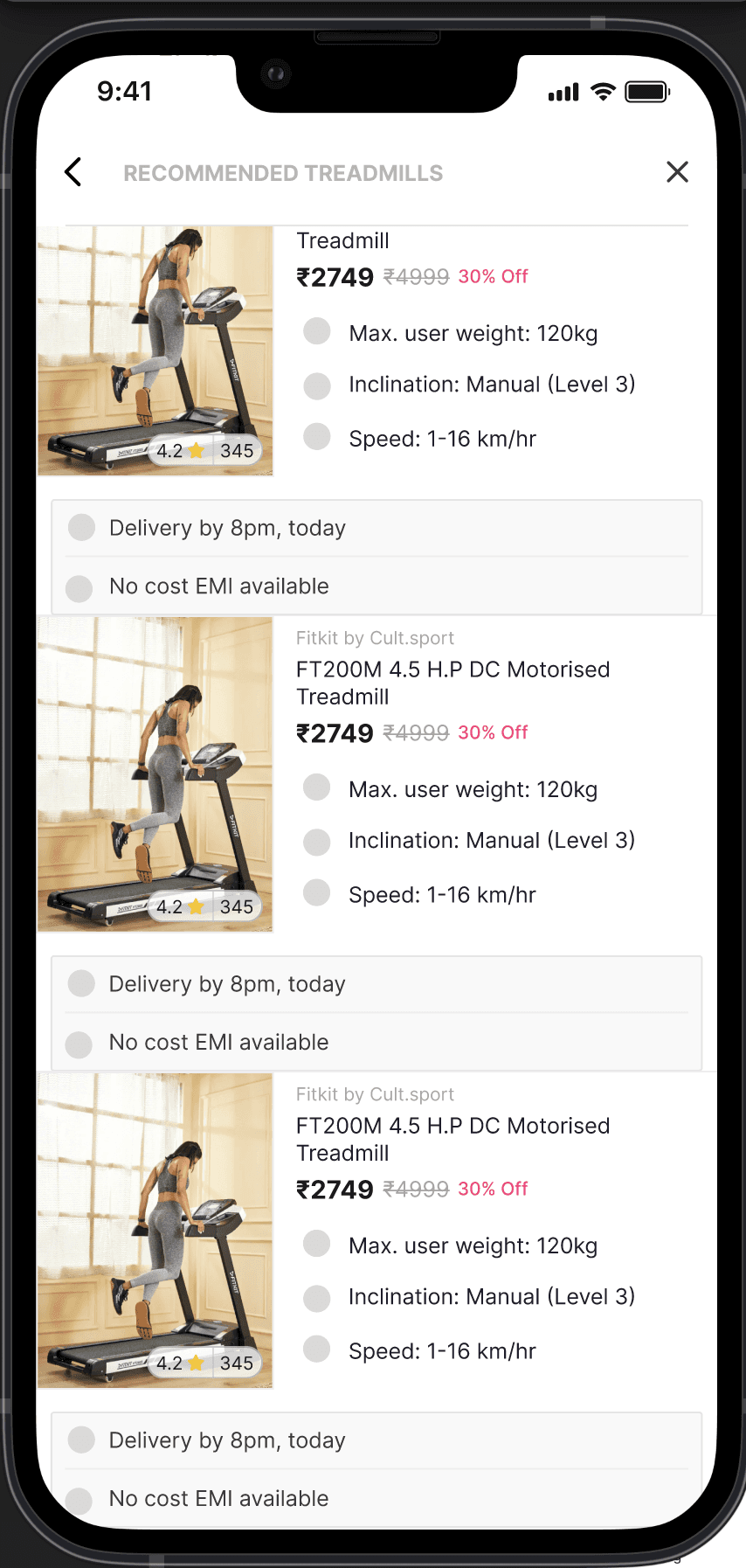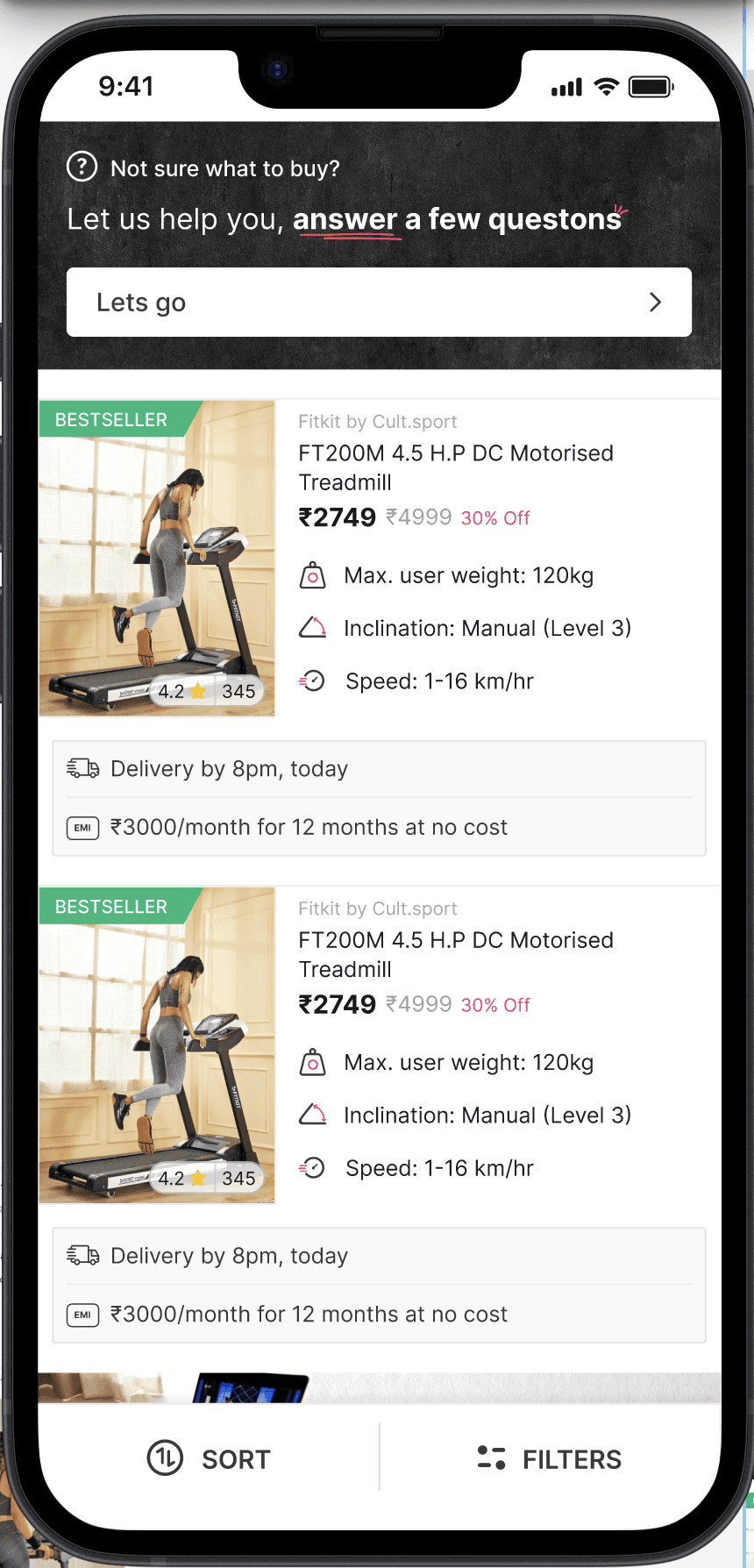 A large number of users were bouncing from the cardio product listing pages, and we needed to increase conversion while reducing drop-offs.